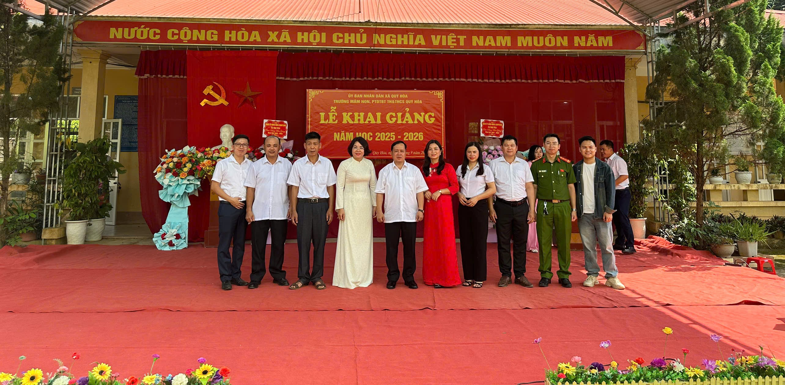 Dự và chung vui cùng thầy và trò có các đồng chí lãnh đạo Thường trực Đảng ủy, HĐND, UBND xã Quý Hòa; đại diện lãnh đạo các phòng, ban chuyên môn của xã cùng đông đảo phụ huynh học sinh. Sự có mặt của các đồng chí lãnh đạo đã thể hiện sự quan tâm, động viên kịp thời, tạo thêm động lực cho các nhà trường bước vào năm học mới.