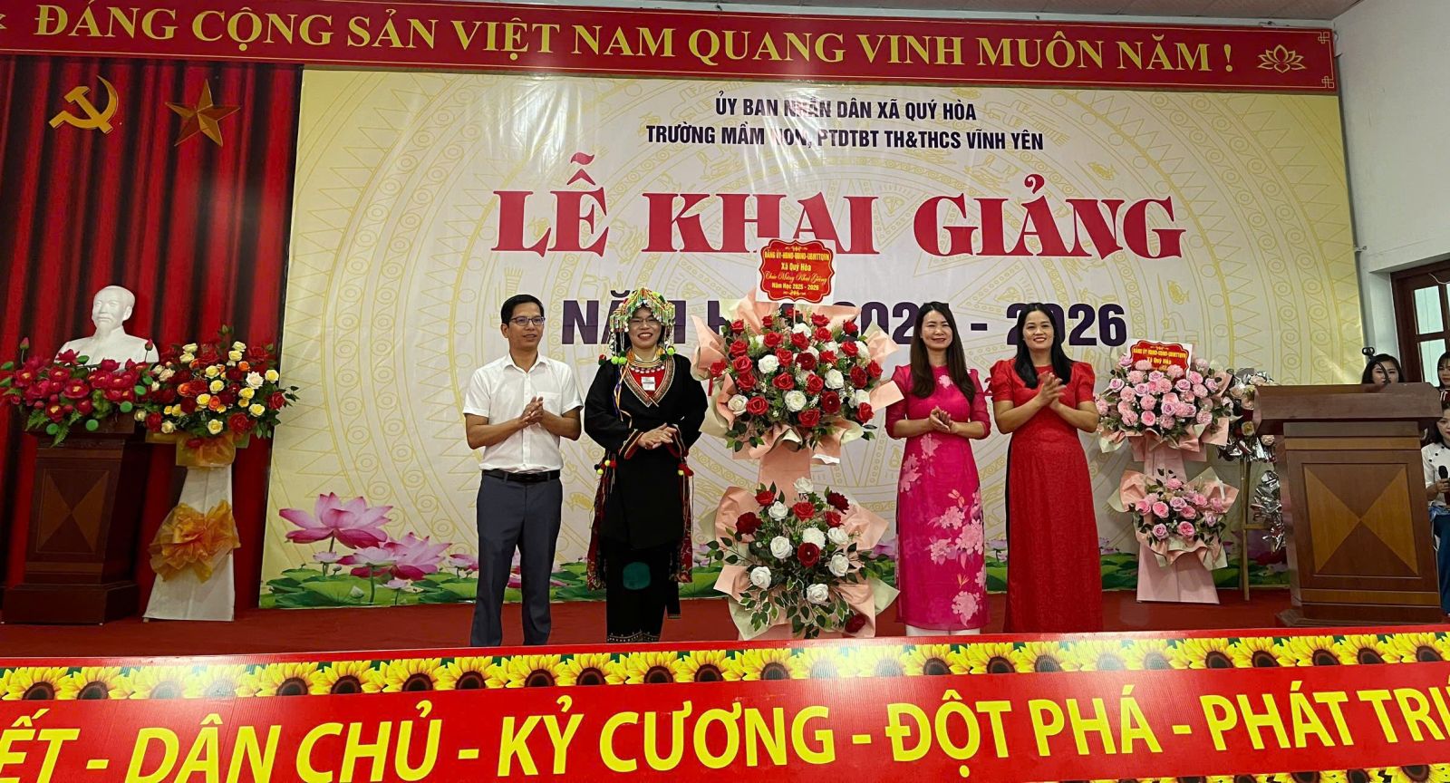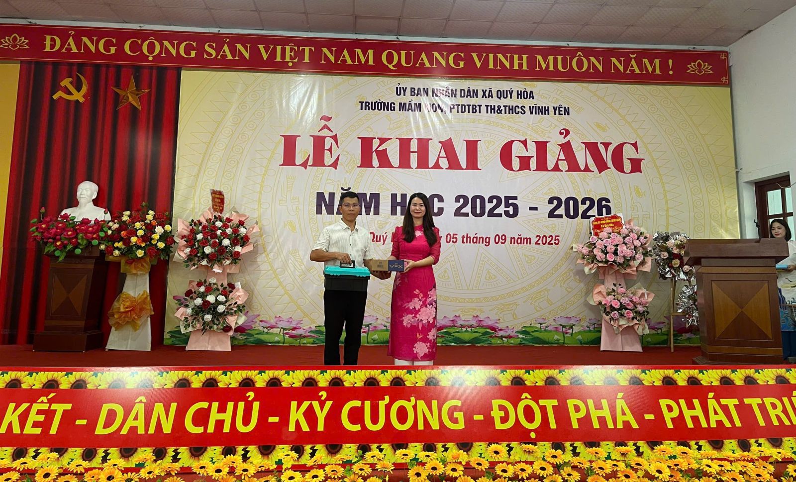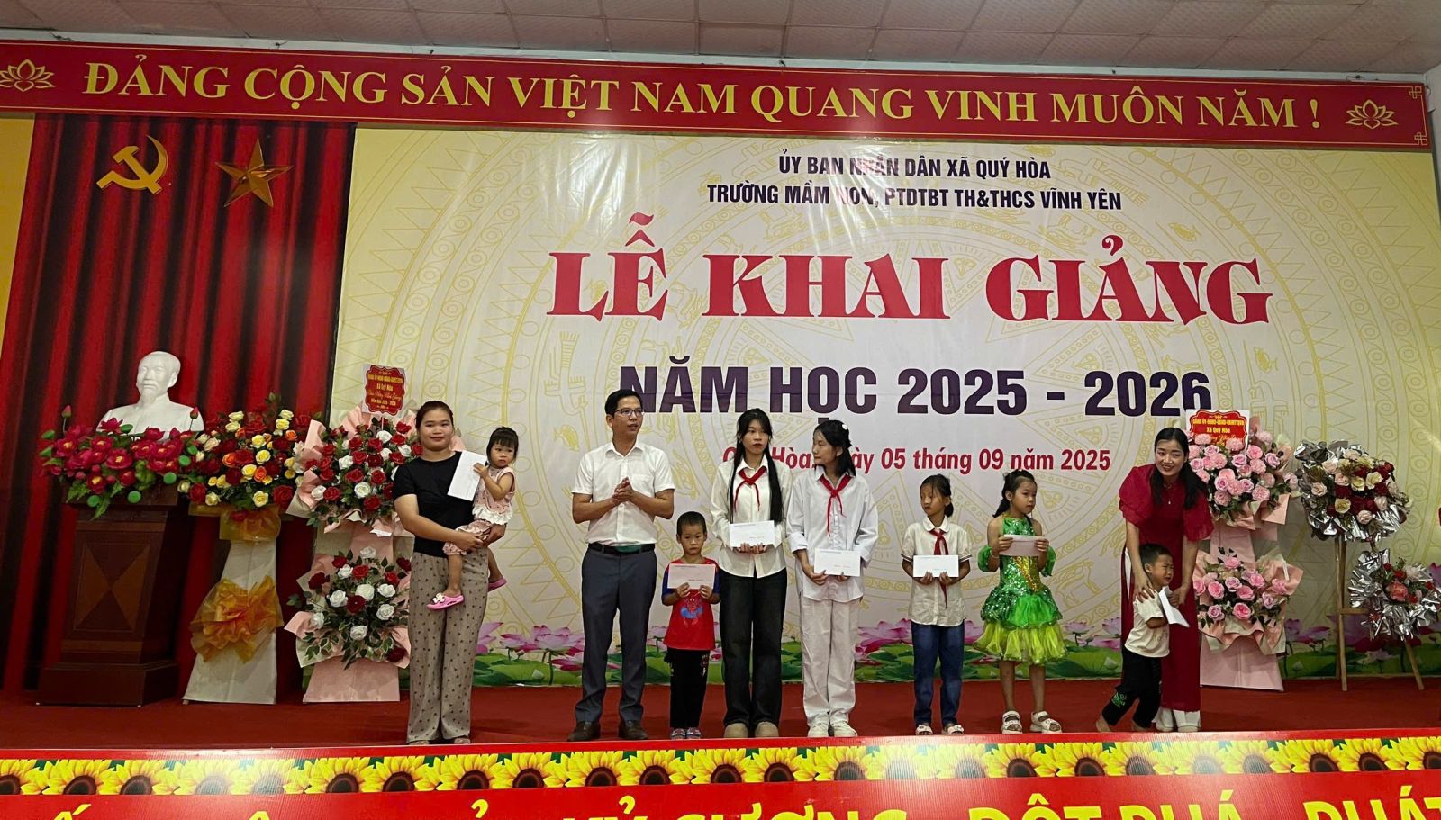 Sáng ngày 05/9/2025, hòa chung không khí náo nức của Ngày hội toàn dân đưa trẻ đến trường, các trường mầm non, trường PTDTBT TH&THCS Vĩnh Yên và trường mầm non, trường PTDTBT TH&THCS Quý Hòa đã long trọng tổ chức Lễ Khai giảng năm học 2025 – 2026.